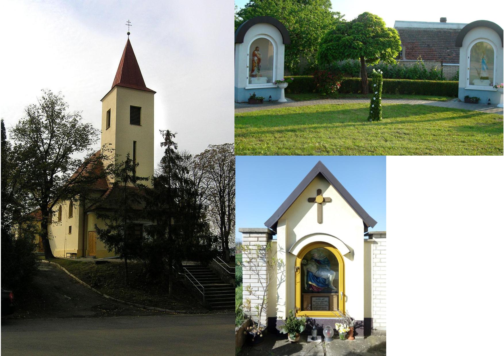 V obci, v těsné blízkosti hřbitova a kostela, byly v roce 2003 postaveny dvě kapličky a 22. června 2003 byly vysvěceny Mons. Mgr. Jiřím Mikuláškem. Napravo se sochou Panny Marie Lurdské, nalevo se sochou Božského Srdce Páně. V červnu o slavnosti Nejsvětějšího Srdce Páně se každoročně koná průvod nesením „krušpánkové výslužky“ k těmto kapličkám a připomíná tak dřívější průvod přes celou vesnici, kdy se nesla socha Pána Ježíše. U vchodu na nový hřbitov, vedle kostela, je postavena nejnovější kaplička se sochou Panny Marie Bolestné, která byla požehnána 7. října 2012 P. Milanem Těžkým.